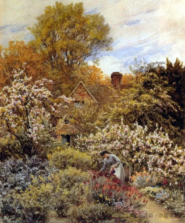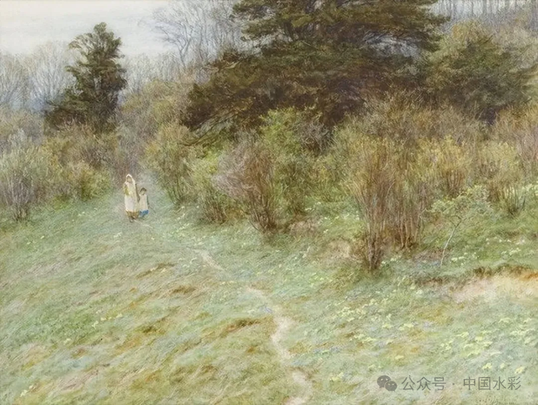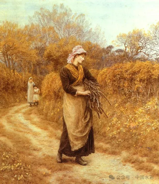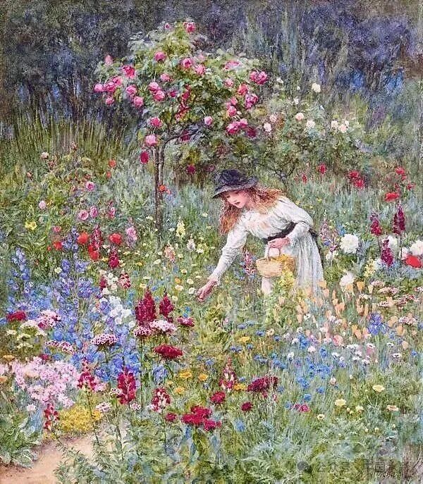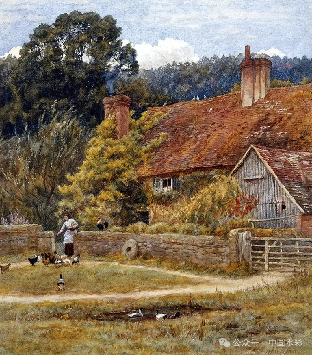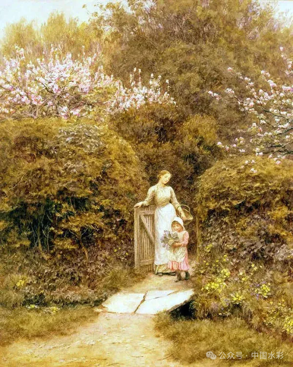 阿林厄姆早期的作品主要是有场景的大型人物题材,婚后的乡间生活使她转向有风景的小型人物题材和描绘生活周边的田园乡村,子女也成了她的画中人,也因此名声大振。1890年阿林厄姆加入了英国皇家水彩画协会,也是第一位女会员,尽管当时的女性无法获得和男性相同的认可,但这些不妨碍她成为有影响力的女性艺术家之一。
