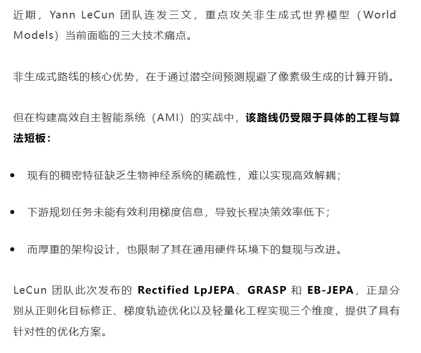 针对世界模型落地难题,LeCun 团队连发三文,给出从算法到工程的全栈最优解。