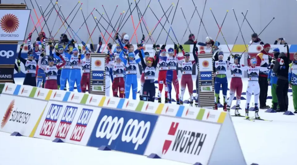 为了抗议,2026年1月30日,在奥地利塞费尔德举行的北欧两项世界杯女子比赛现场,完赛的运动员们集体将滑雪杖举过头顶,交叉成一个巨大的“X”形,表示她们被禁止参加奥运。这种无声的抗议,是对那个将她们排除在外的顶级舞台,最有力的质问。
