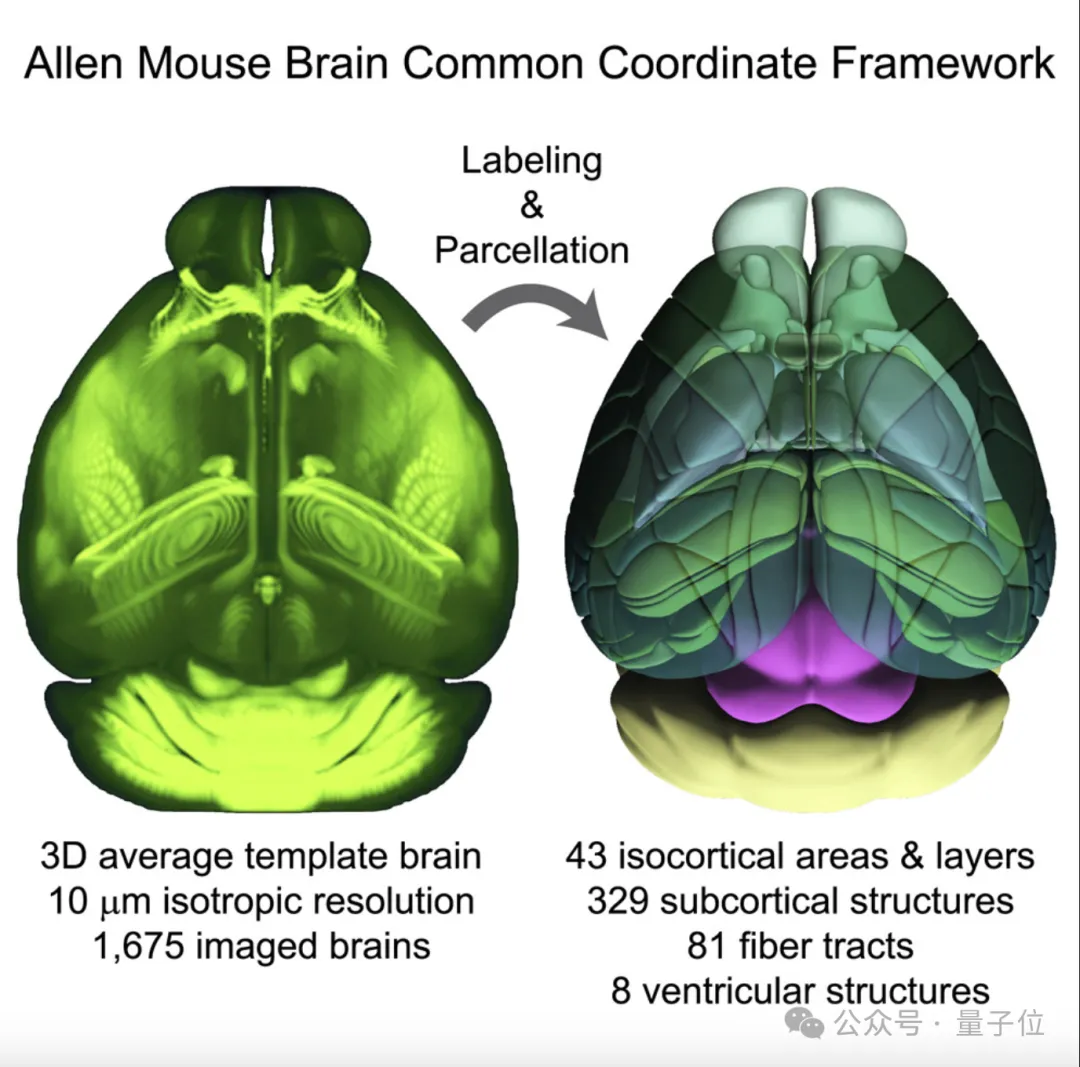 这幅脑图基于1675只小鼠的脑部数据,涵盖了1000多个不同的脑区,具有很高的价值。