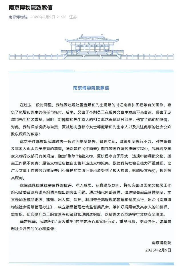 这声叹息,是对过往失职的遗憾,更是对未来守护的警醒。南京博物院作为国内顶尖的公共博物馆,是文脉传承的重要载体,是公众信任的文化标杆。文物从来不是私人藏品,更不是牟利商品,而是民族共同的文化根脉;博物馆的核心使命,从来不是粗放管理、随意处置,而是敬畏文物、坚守初心、守护信任。