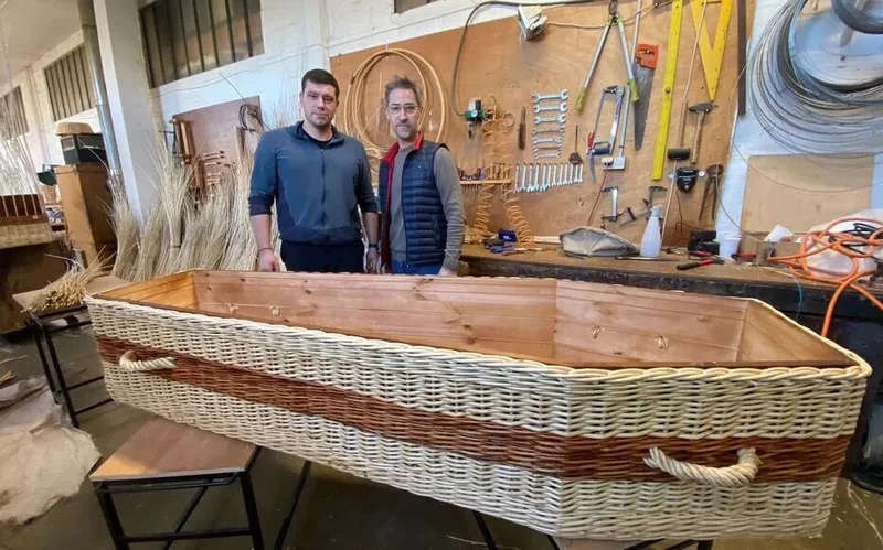 在法国,丧葬法律有着严格的准入制度。泽维尔最初萌生制作柳条棺材的念头,还是在疫情之前。他观察到邻国英国和比利时已经允许使用纯柳条棺材,但在法国,法律规定棺材必须具备一定的承重和封闭标准。