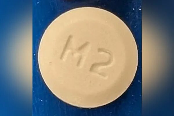 被错误装入的药物“米多君2.5毫克片剂”(Midodrine 2.5 mg tablets)为圆形,标有“M2”字样。
