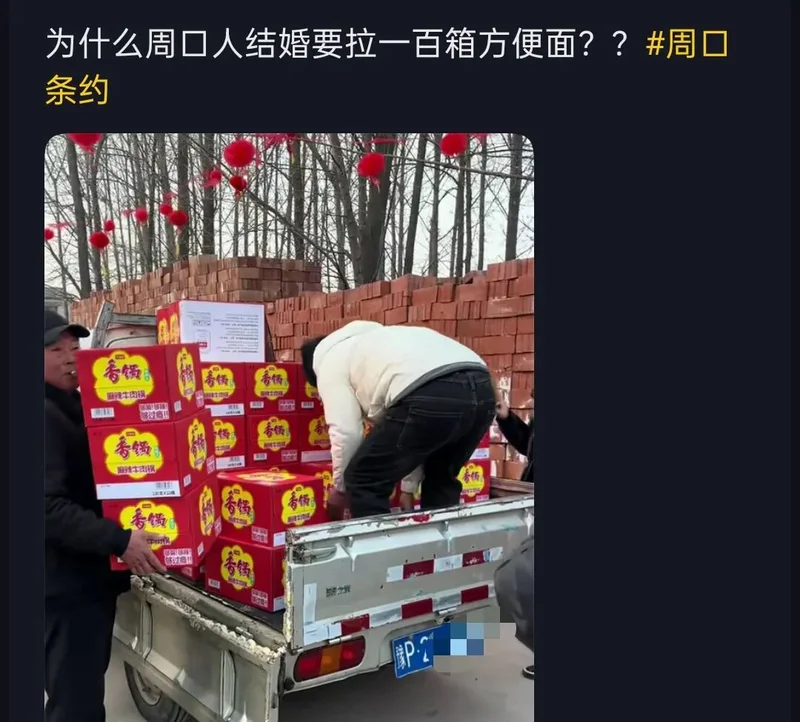 就像周口的人结婚,男方家要送女方家一车方便面,据说是图个“方便见面”的好寓意,不禁令人感慨周口的方便面业务员真是个天才。