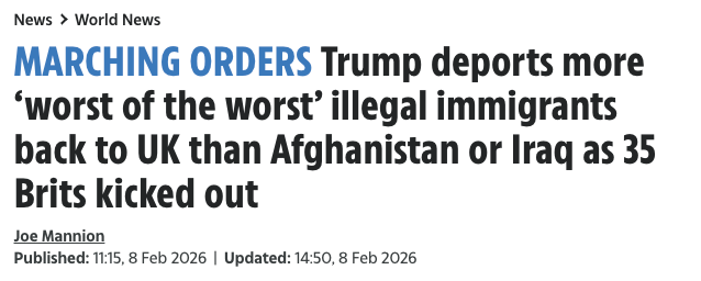 川普总统在美国严厉打击无证移民的执法行动中,计划驱逐35名被认定为“最恶劣罪犯”(worst of the worst)的英国籍无证移民。
