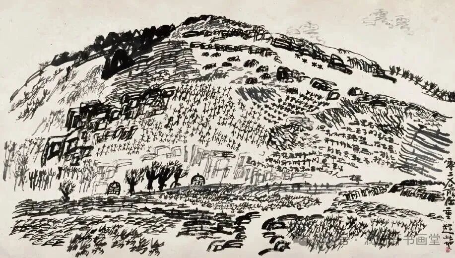 作品《读风景,喜马拉雅写生》中,他用“山”字来写山,用“水”字来写水,用“木”来写木,用“云”字来画云……
