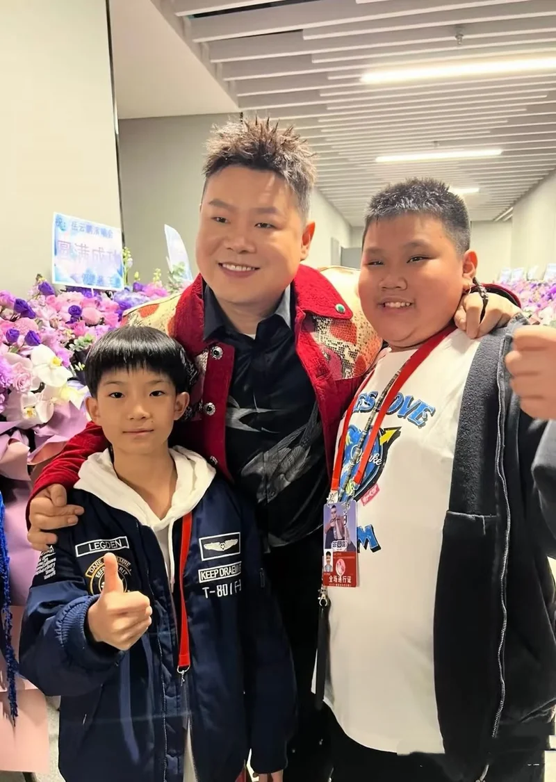郭汾阳还和岳云鹏合影了,岳云鹏穿着红色外套,很帅气。这两人的大体格子差不多了,甚至郭汾阳比岳云鹏还要壮实。