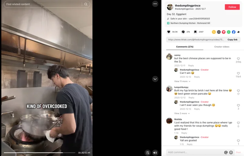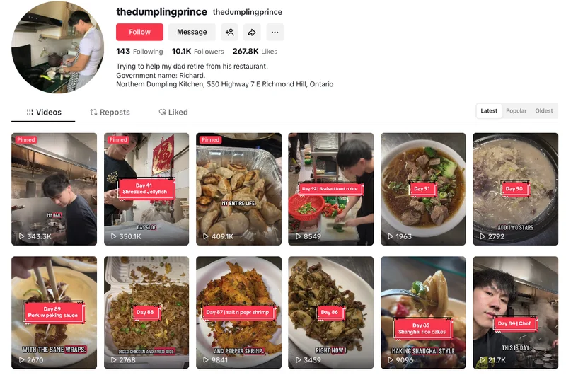 原来,这位年轻人正在TikTok上记录自己学习做菜、接班家族生意的全过程。
