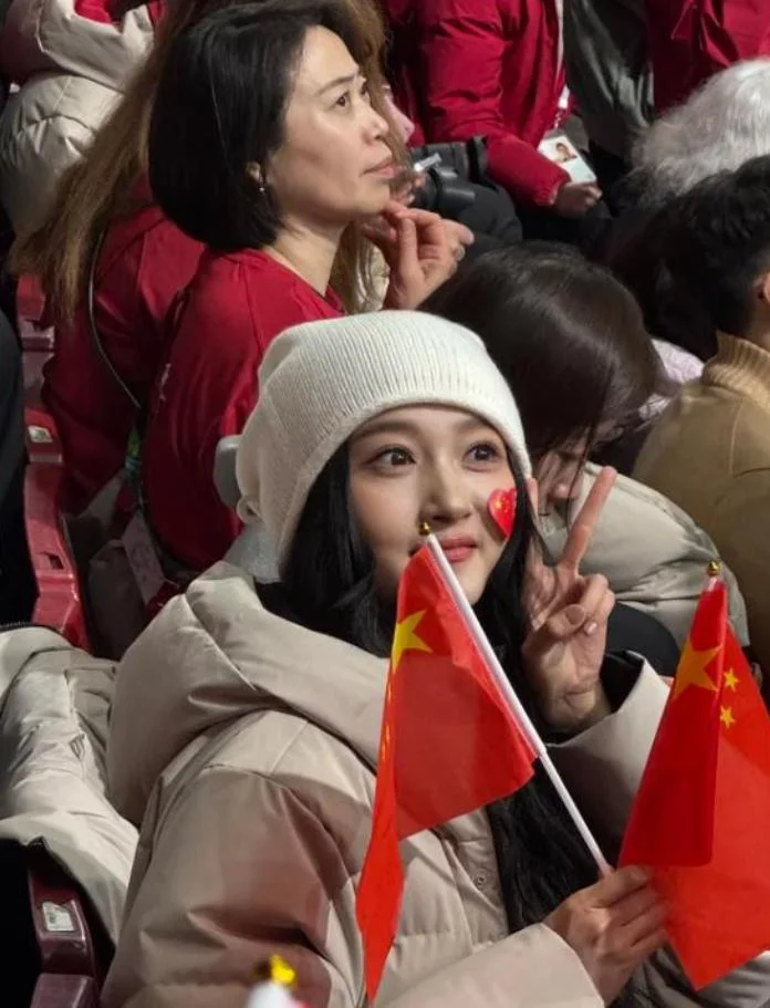 她还去了米兰的滑冰馆,看短道速滑比赛,和现场的中国观众一起,大声给中国队员加油。