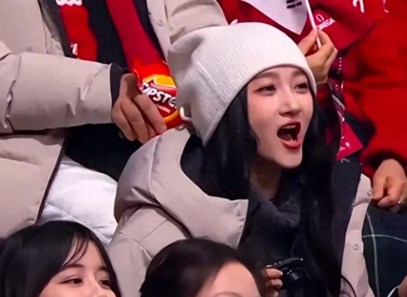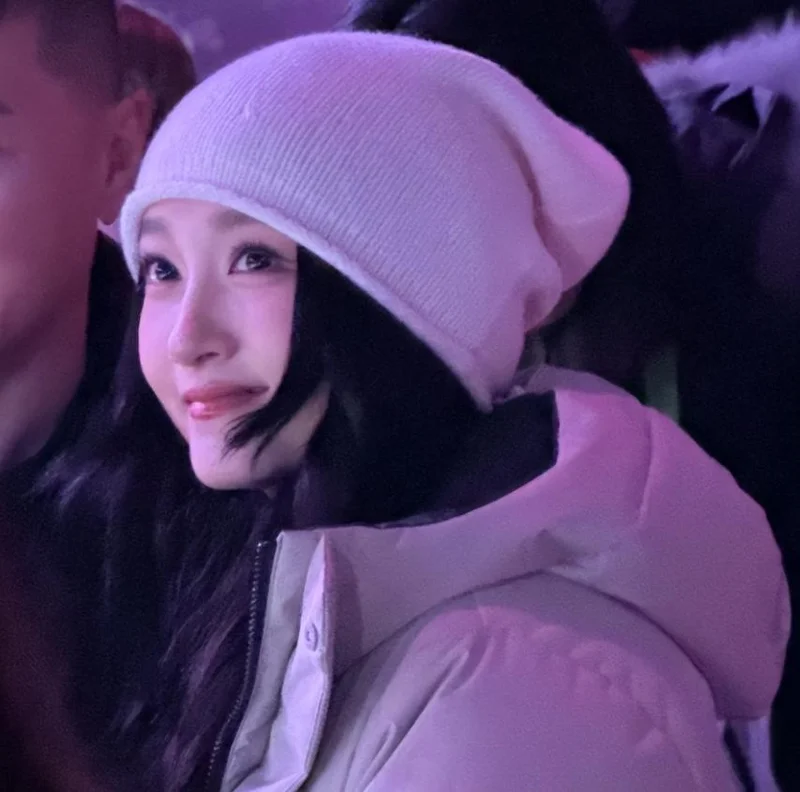 她没带保镖,一个人安安静静的,穿的是简单的深色套装,头戴浅红色的针织帽,不花哨但显精神,脸看着也特别小。