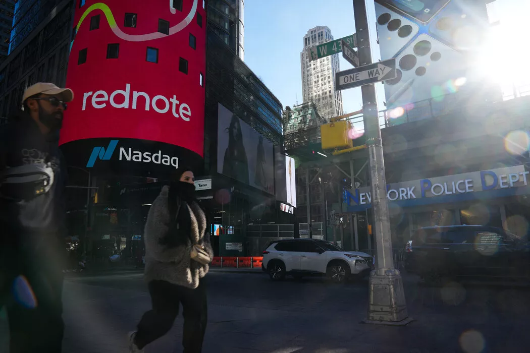 中国社交应用小红书在纽约时报广场投放的广告,摄于去年。Bryan R. Smith/Agence France-Presse — Getty Images