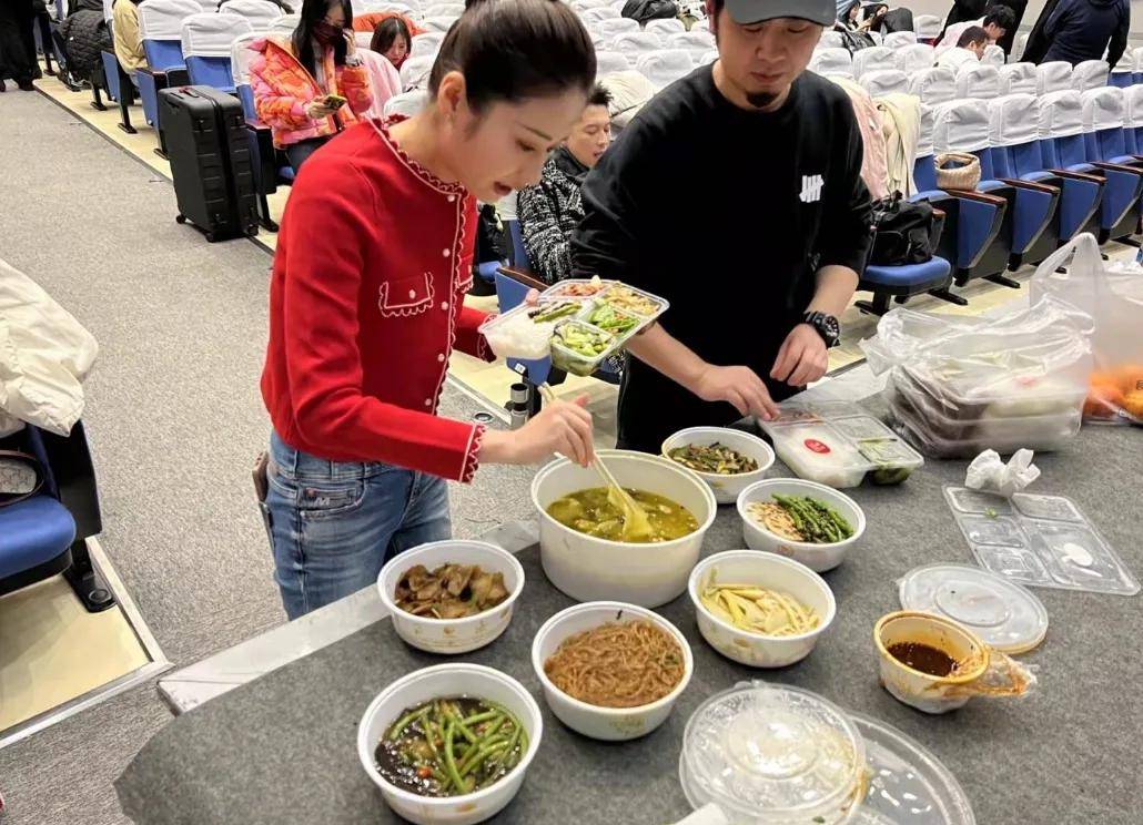 央视春晚的盒饭“硬菜”还是比较多的,2023年的时候,演员孙茜就边化妆边吃饭,还晒出了吃盒饭的照片。