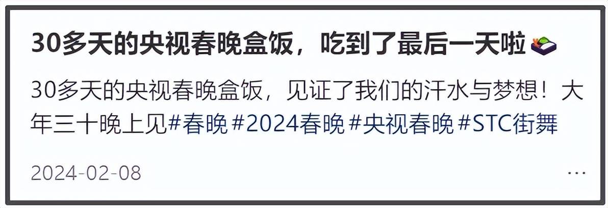 有群演晒出过蛇年春晚的彩排盒饭,伙食待遇很不错顿顿都是四个菜。
