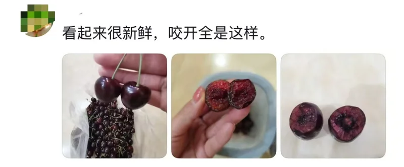 往年,“好吃”“爆汁”“脆甜”“贵的有道理”是车厘子的关键词,今年的评论区,画风属实有点不一样。