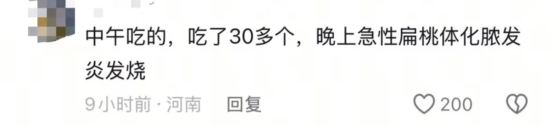 中午吃的,吃了30几个,晚上就急性扁桃体化脓发炎发烧了。