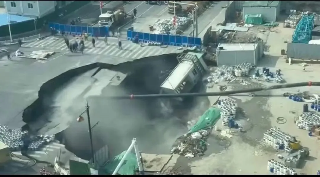 路面塌陷现场图片 图源网络