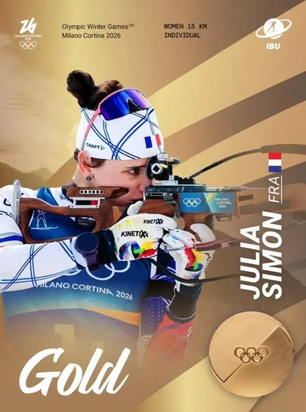 2月11日本周三,米兰冬奥会女子15公里个人冬季两项赛中,法国冬季两项运动员朱莉娅·西蒙(Julia Simon)夺得冠军。