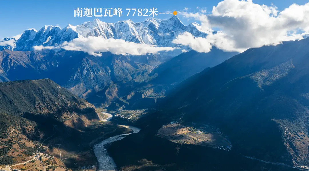 南迦巴瓦峰就站在这条伤口旁边,海拔7782米。峡谷北侧的加拉白垒峰高7294米。