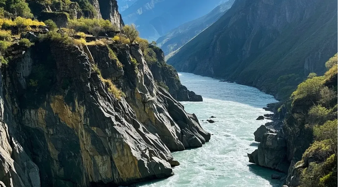 沿着这条伤口,雅鲁藏布江找到了出路。河流没有选择权,它只能顺着断裂线流动,跟随地壳抬升的节奏,越挖越深。