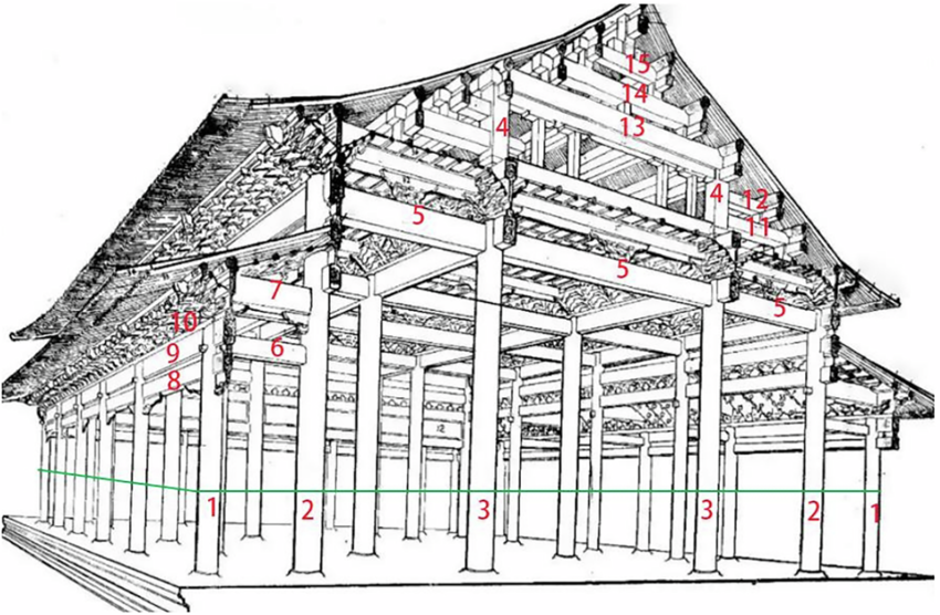 榫卯结构的好处是不需铁钉,通过在木材上制作凸出的“榫头”与凹进的“卯眼”相互咬合,实现连接与固定。这种结构通过精确的几何咬合,使木结构具有极高的韧性和抗震性能。