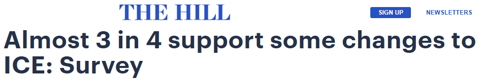 民调:近3/4美国人支持改革ICE国会山报