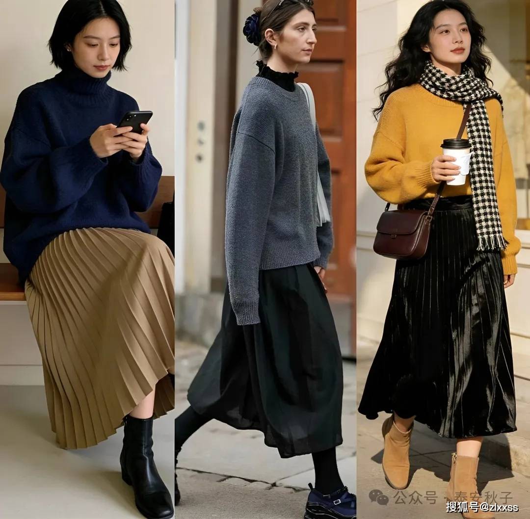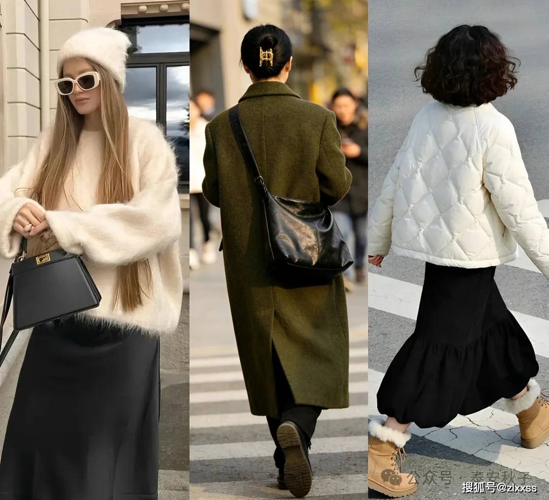 建议大家选羊绒,丝绒,毛呢等厚材质的大裙子来穿,这样的材质,冬天穿起来保暖舒服,垂坠性也好,最适合40+女人。