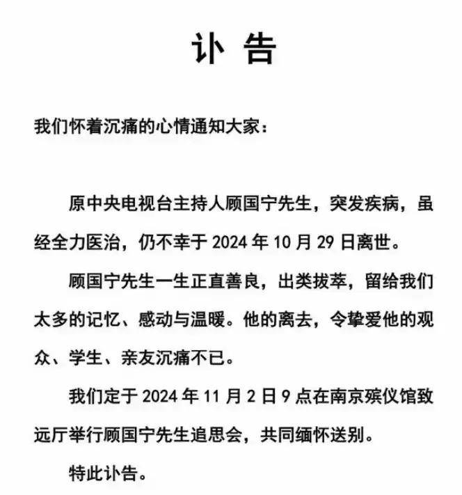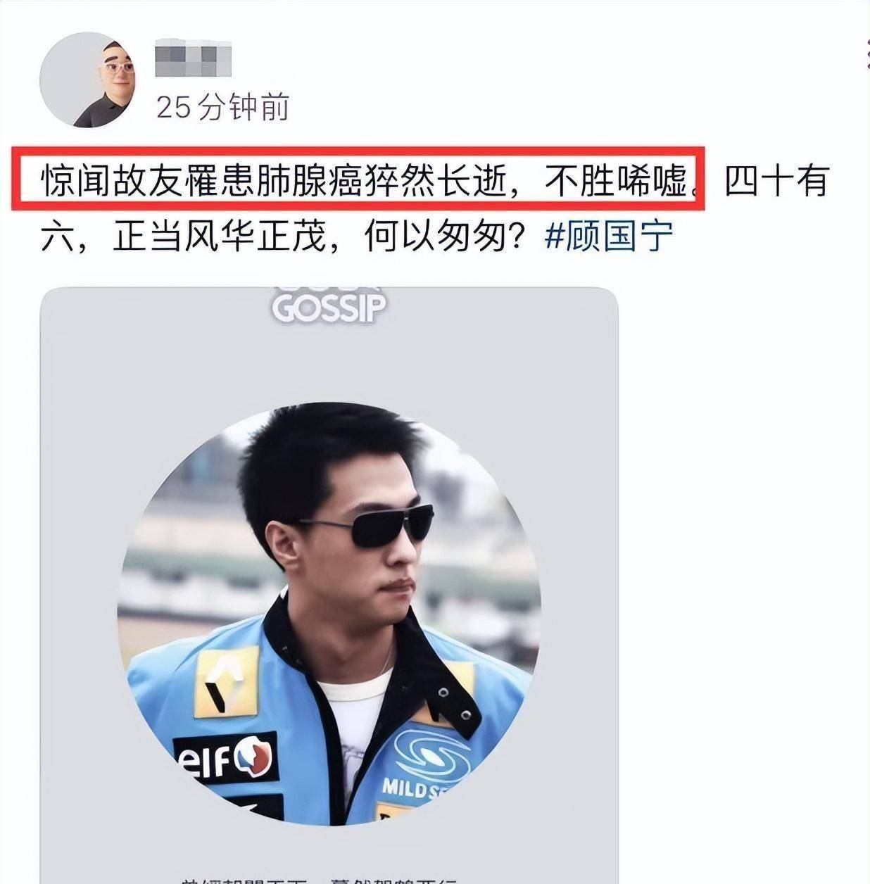 然而,本年度10月,一则突如其来的消息,震惊了所有人:顾国宁去世了,年仅46岁。