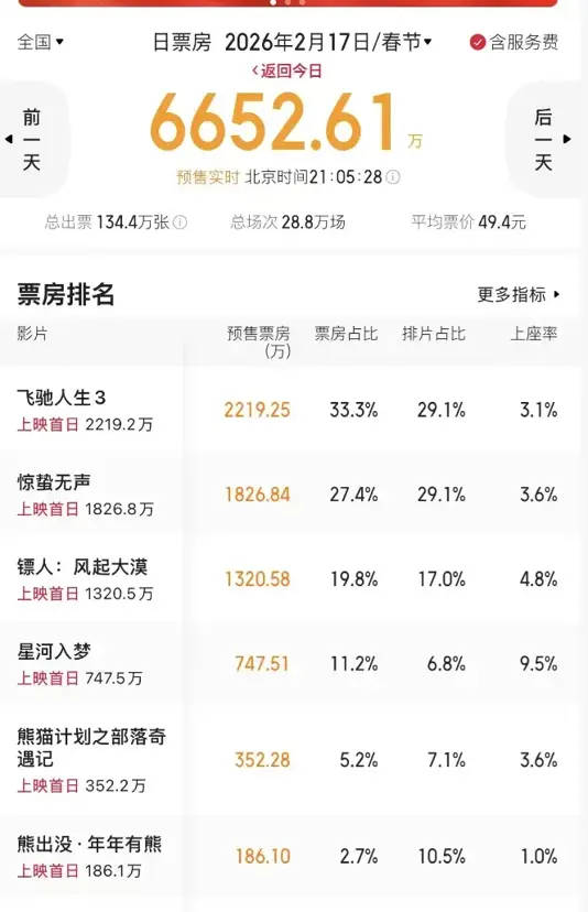 目前,是沈腾韩寒的电影《飞驰人生3》遥遥领先,排在了预售榜的第一名,首日预售成绩超过了2000多万,排片量也是相当高的。