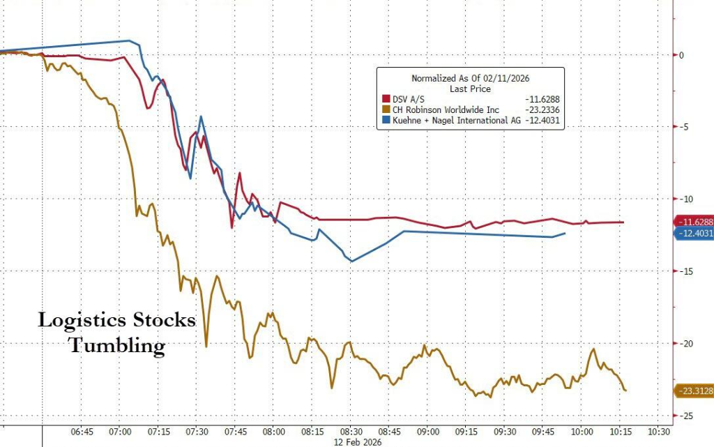 物流公司成为近期遭受AI恐慌冲击的最新行业。此前,房地产公司、软件制造商、私人信贷提供商、保险经纪和财富管理公司等多个行业都在AI颠覆担忧中遭受重创。