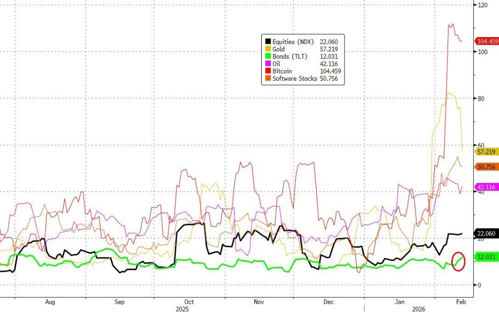 值得注意的是,周四的抛售是一次更广泛避险行动的一部分,当天纳斯达克100指数下跌2%,黄金、白银及加密货币也出现大幅下挫,市场正从对AI技术的狂热追捧转向对其颠覆性力量的深度恐惧。据华尔街见闻文章提及,市场对人工智能将颠覆众多行业商业模式的深层忧虑,叠加美国成屋销售降幅创四年来最大,引发市场避险情绪。