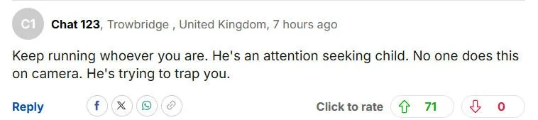 “不管你是谁,赶紧跑。这就是个爱出风头的小屁孩,他伤害了你一次,还要在全世界的注视下伤害你第二次。”