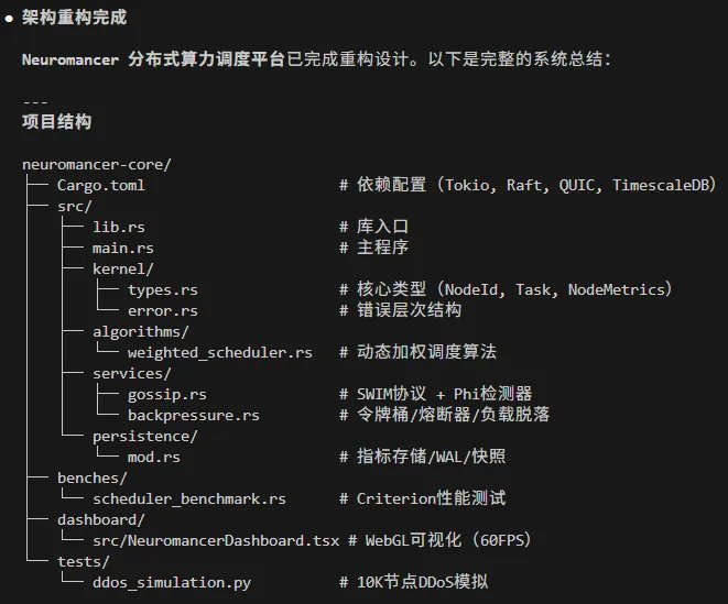 我们没有让它写游戏,而是扔给它一个极度硬核的任务:从零构建一个基于 Rust 的高并发分布式算力调度系统。