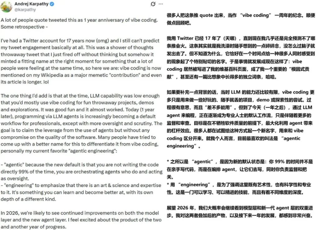 这一次,Karpathy 同样给出了非常不错的总结。他写到:「通过 LLM agent 来编程,正在逐渐成为专业人士的默认工作流,只是伴随着更多的监督和审查。目标是在不牺牲软件质量的前提下,最大化利用 agent 带来的杠杆效应。」