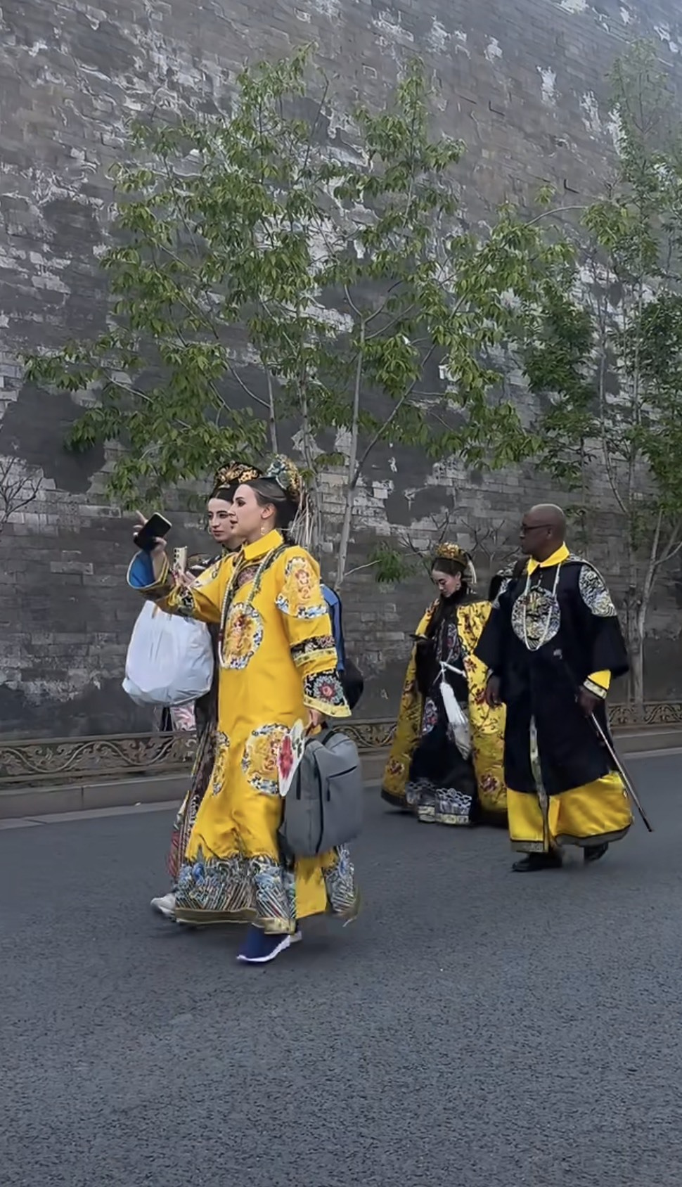 脚下穿着运动鞋,手上拿的是自拍棒和手机,在紫禁城穿旗装或明制汉服当清宫格格,当格格们满街跑,这看起来不搭调的装扮与穿越体验,如今已是许多中国年轻人的情绪出口。