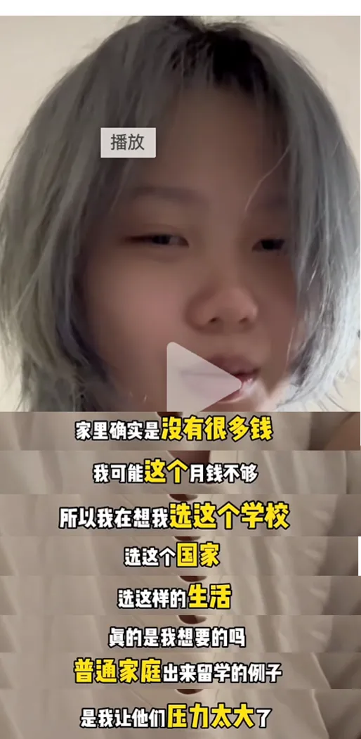 来源视频号博主@小茶几yi:「我从七年级就开始读国际高中,是不是他们觉得,如果不留学这些投资都失败了呢?」