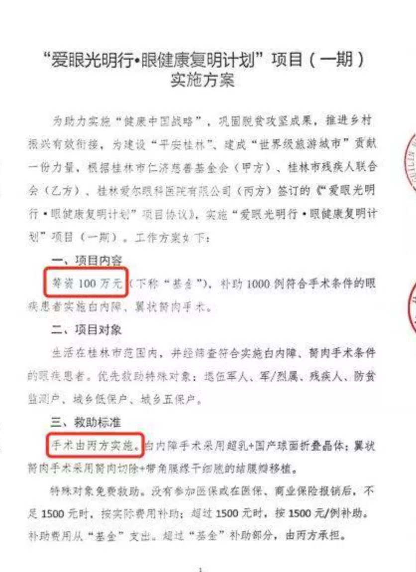 除了直接被罚的骗保行为,爱尔眼科还曾因慈善活动涉嫌“变相骗保”被质疑。据报道,桂林爱尔眼科曾组织一场出资100万元的慈善活动,宣称将为贫困地区村民提供免费眼科手术,但背后却暗藏“左右兜互倒”的操作。