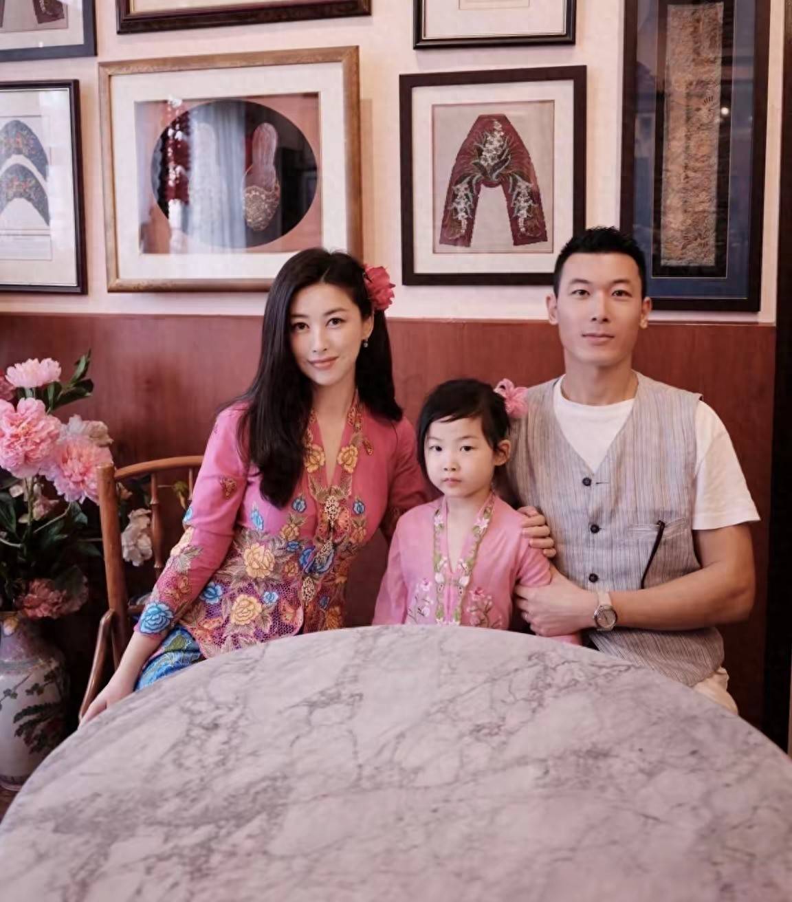 同行的小女儿扎着齐肩发,穿了和妈妈同款的浅蓝棉布裙,起初只露着灵动的背影蹦跳,直到一家人转去娘惹博物馆,才让大家看清软乎乎的脸蛋:圆眼睛、饱满的苹果肌,眉眼和爸爸几乎复刻。朱珠换上娘惹服时,修身的刺绣上衣衬得她温婉又灵动,既有南洋风情的明媚,又带着中式女子的沉静,可身边丈夫举着相机连拍的样子,比她的造型更戳人。