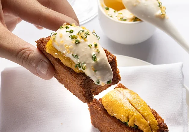 海胆配咸蛋黄黄油的虾吐司,吃一次就忘不了。还有甜得像焦糖的脆皮四川茄子、蟹肉多到离谱的福建炒饭。