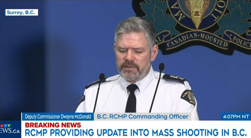 皇家骑警副警务专员Dwayne McDonald表示,枪手的一名家庭成员在最初发生命案后,前往邻居家求助,从而触发了报警。