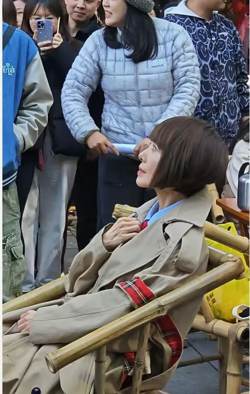 那天成都气温不算低,鲁豫却裹着卡其色长风衣,浅蓝衬衫配红色领带裹在身上,仿佛衣服底下只剩一副衣架。 围观群众默契地安静站着,看她抬手时腕骨转动的弧度,有人小声嘀咕“这胳膊还没我家晾衣杆粗”。