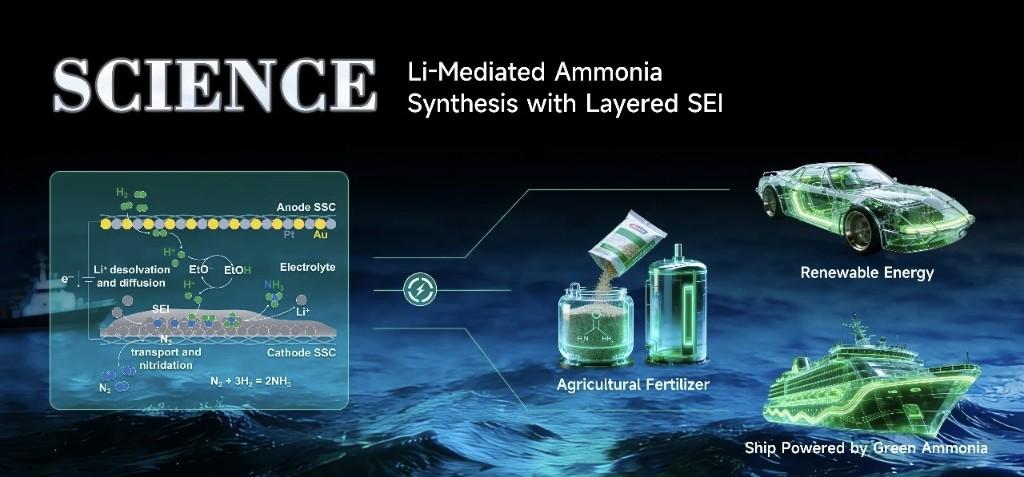 传统哈伯—博施法合成氨需高温高压且依赖化石能源,碳排放巨大。锂介导电化学还原制氨是绿色替代方案,但长期受限于电极表面固体电解质界面(SEI)离子传导差、高电流下易失效等问题,氨分电流密度长期停留在8mA cm-2以下,高压间歇电解能效也仅3%。