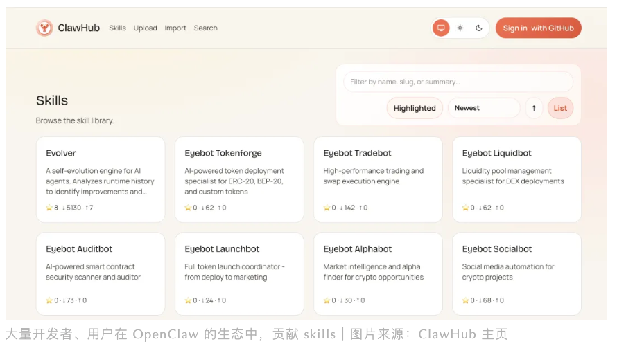 与去年爆火的 Manus 不同,Manus 诞生后引发了大量的模仿,而 OpenClaw 则是引发了「共建」,大量开发者涌入,围绕它迅速形成了日益壮大的商业生态,包含安全版本、技能市场、工作流插件、二次开发等等。