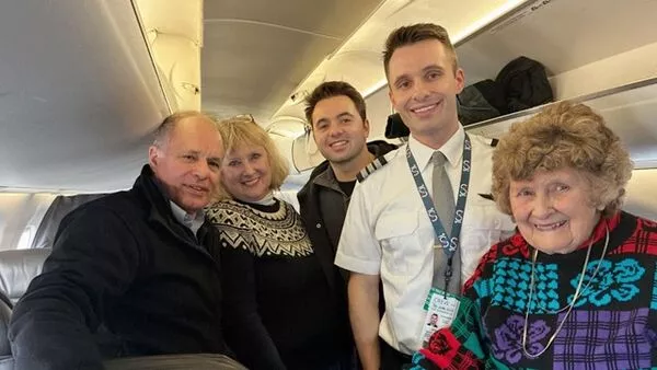 起飞前,亚历克斯透过机内广播,向乘客分享这份喜悦,「今天这趟飞行对我来说意义非凡,我的父母跟奶奶都坐在前排。我的父母过去从未搭乘我驾驶的班机,而我88岁的奶奶更是这辈子从来没飞过,这是她人生第一次搭飞机。所以,这对我和她来说,都是很特别的经验。」