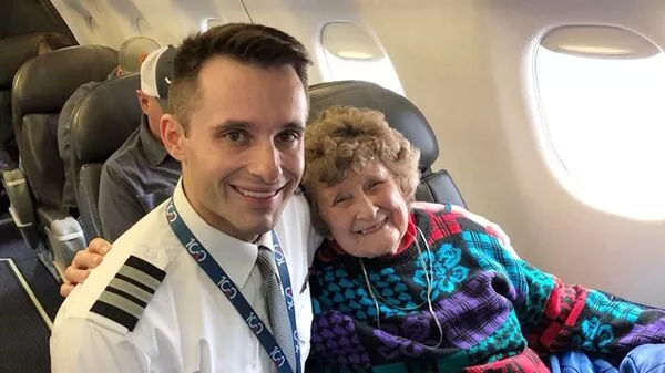 美国威斯康辛州88岁老奶奶法兰西丝(FrancesDahlke)终于完成梦想,人生第一次体验搭飞机的滋味,而驾驶舱内的机长,正是她的亲孙子。