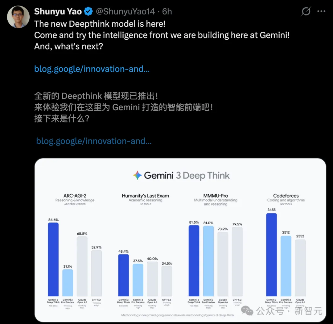 离职Anthropic入职谷歌的华人学者姚顺宇参与了Gemini 3 Deep Think