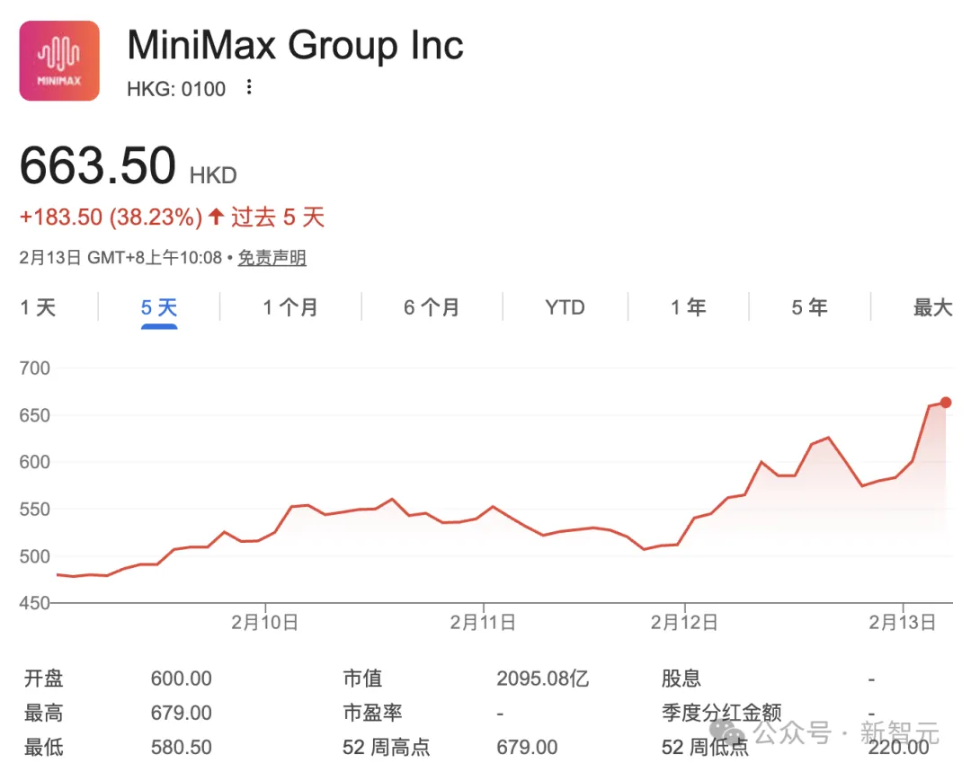 就在今天,MiniMax 已经暴涨 16.2 %,总市值一度达到 2108 亿港元,涨至历史新高。