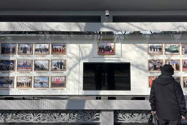 据报道,朝鲜驻华大使馆正门旁的大型公告栏贴出25张新照片。从排列方式来看,金正恩和金主爱的合影位于正中央,左右各排列12张照片。排在中央的是金正恩父女于2025年在平壤五一体育场出席迎新年表演时拍摄的照片,照片下端附中文说明,但未明示金主爱的名字。