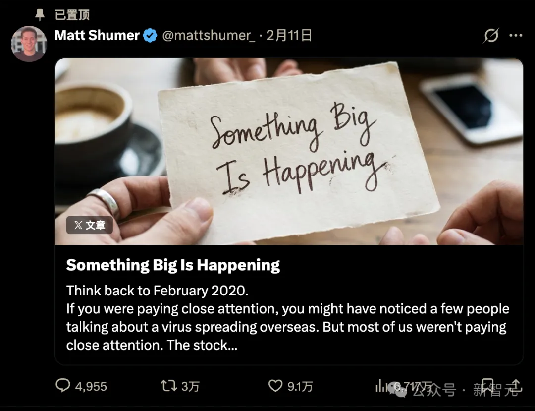 一篇只有 5000 单词(翻译成中文后仅约 3500 字)的 X 上的文章在 24 小时内被全球近 7000 万人读过,并且阅读量仍在以肉眼可见的速度飞速飙升。它说的事,关乎你接下来的每一天。
