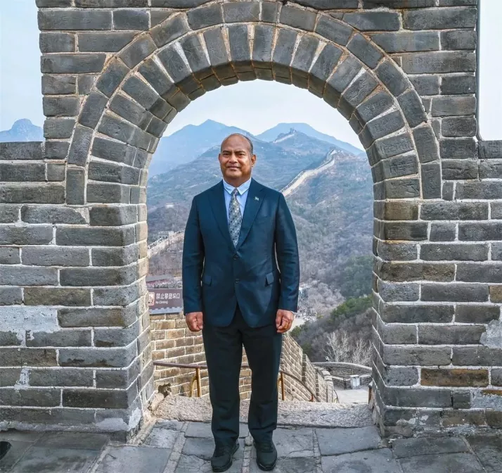 2024年3月,阿迪昂对中国进行国事访问时在八达岭长城。