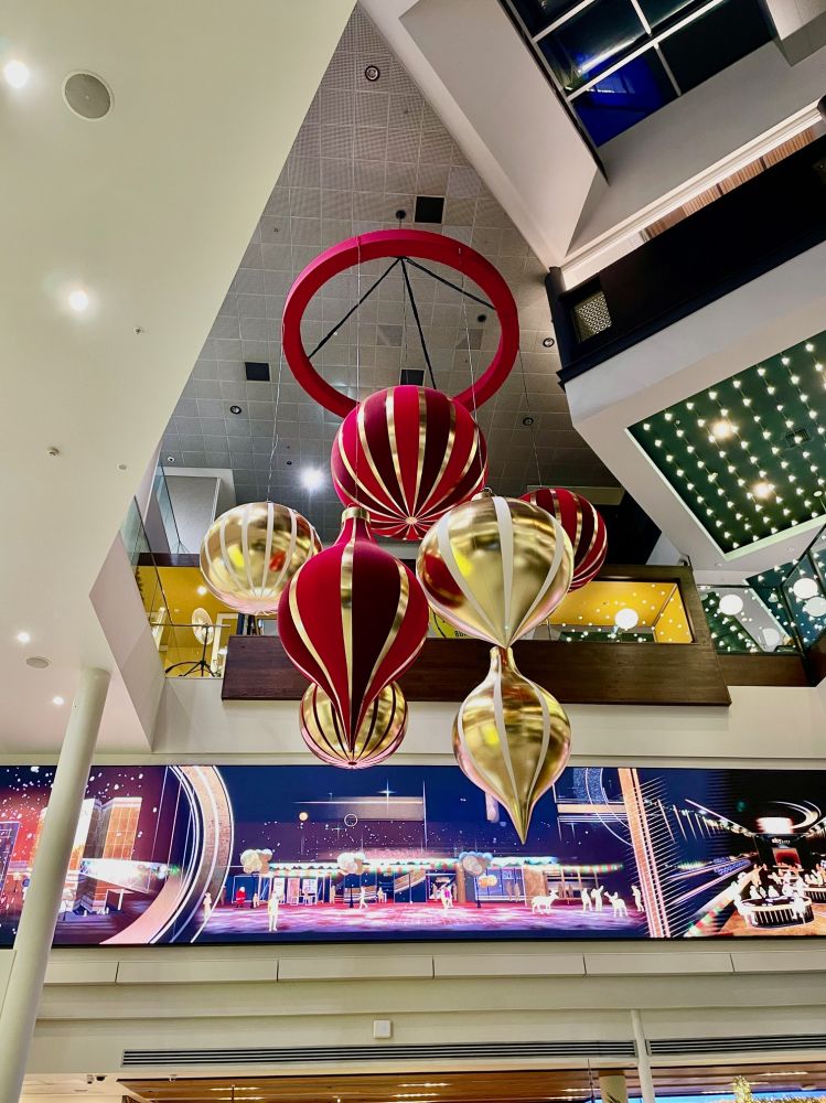 右照片里高处悬吊的人正从天空塔直线下跳/蹦。左图为天空塔内,是个豪华赌场,热闹非凡。